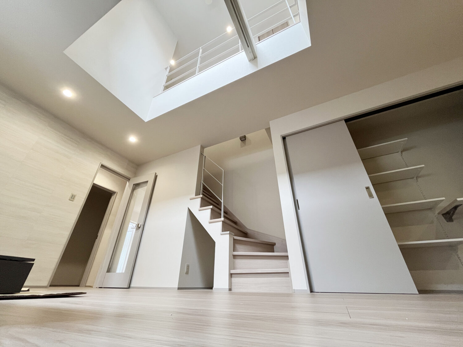 京都府|空間に溶け込むグレージュの吹き抜け手すり