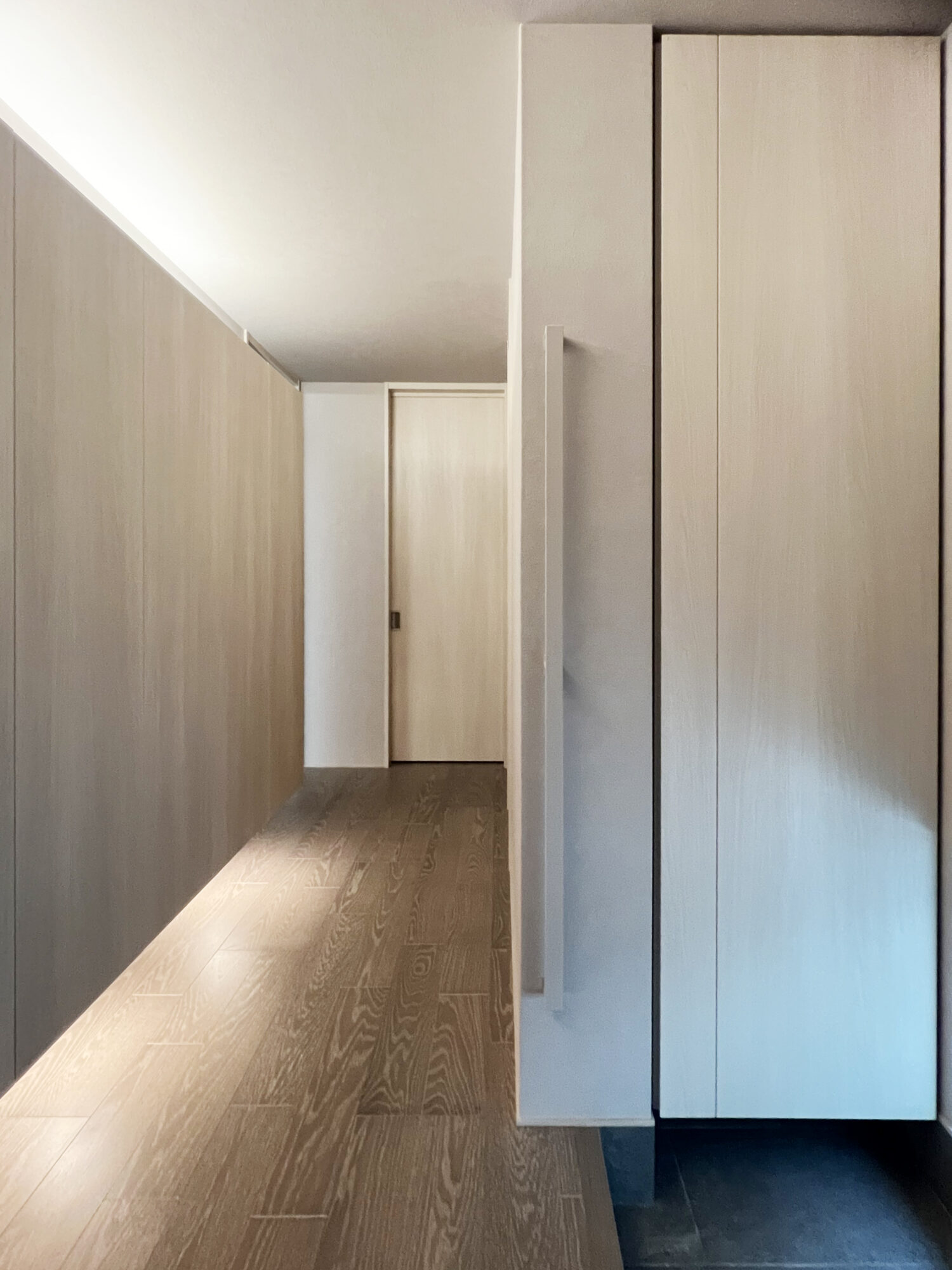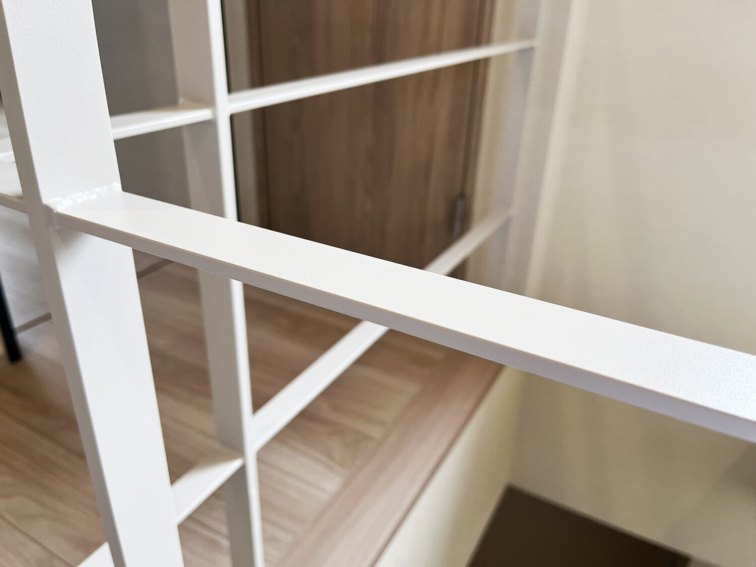 ベージュのクロス、グレーの建具、淡い木目の床材と調和し、アイアンでありながらやわらかな印象に。空間に自然と溶け込み、思わず素材を忘れてしまうほどの馴染み方が印象的でした。