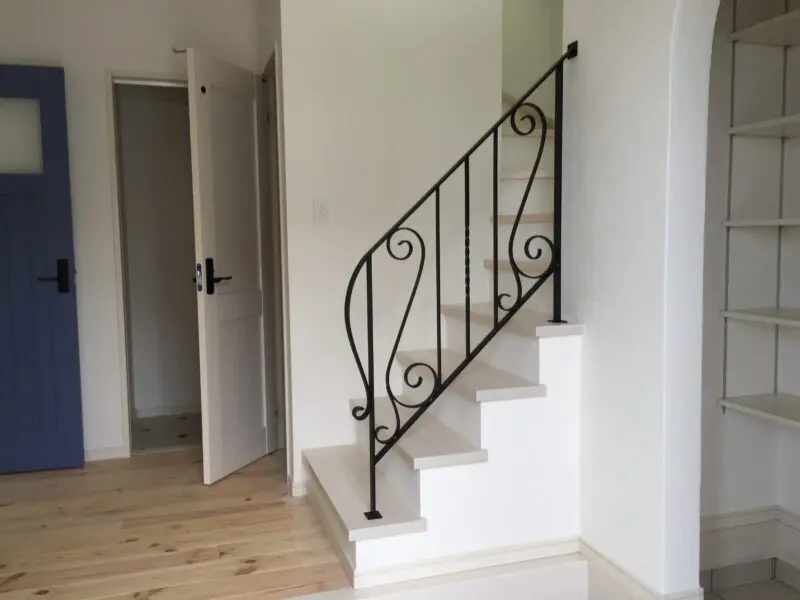 新築のお家の玄関を開けるとまず目に入ってくるのが、この唐草デザインの階段用手摺。S様はデザインで悩んでおられ、当初は王道のバスケットデザインを希望されていました。でも、どうせならオリジナル唐草デザインにしたい!ということでこちらのデザインに。