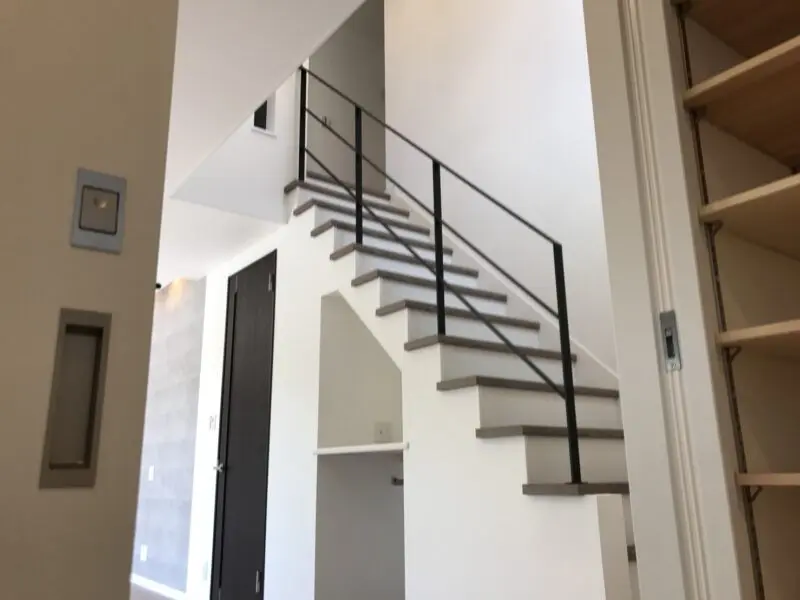 この始め3段回りのかね折れ階段も多く使われる階段ですね!よくお問い合わせ頂くのですが、このタイプは、4段目から始めると凄く階段が生きてきて使いやすく、スッキリします!特にリビング階段となると尚更オシャレにしたいポイントですね!