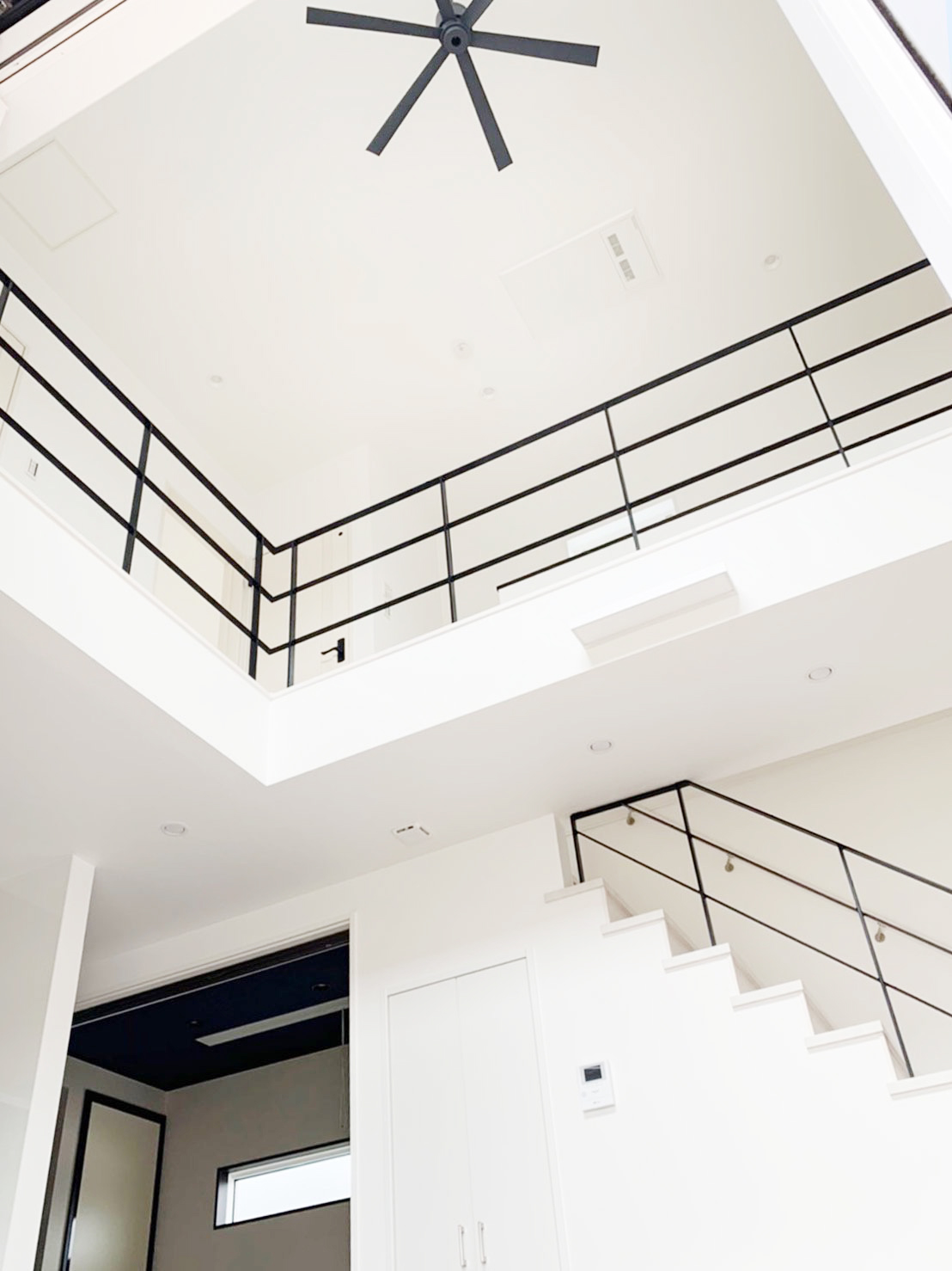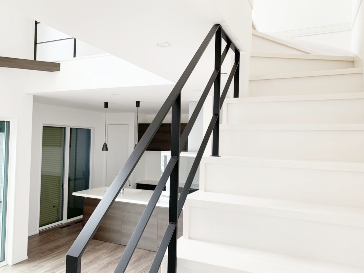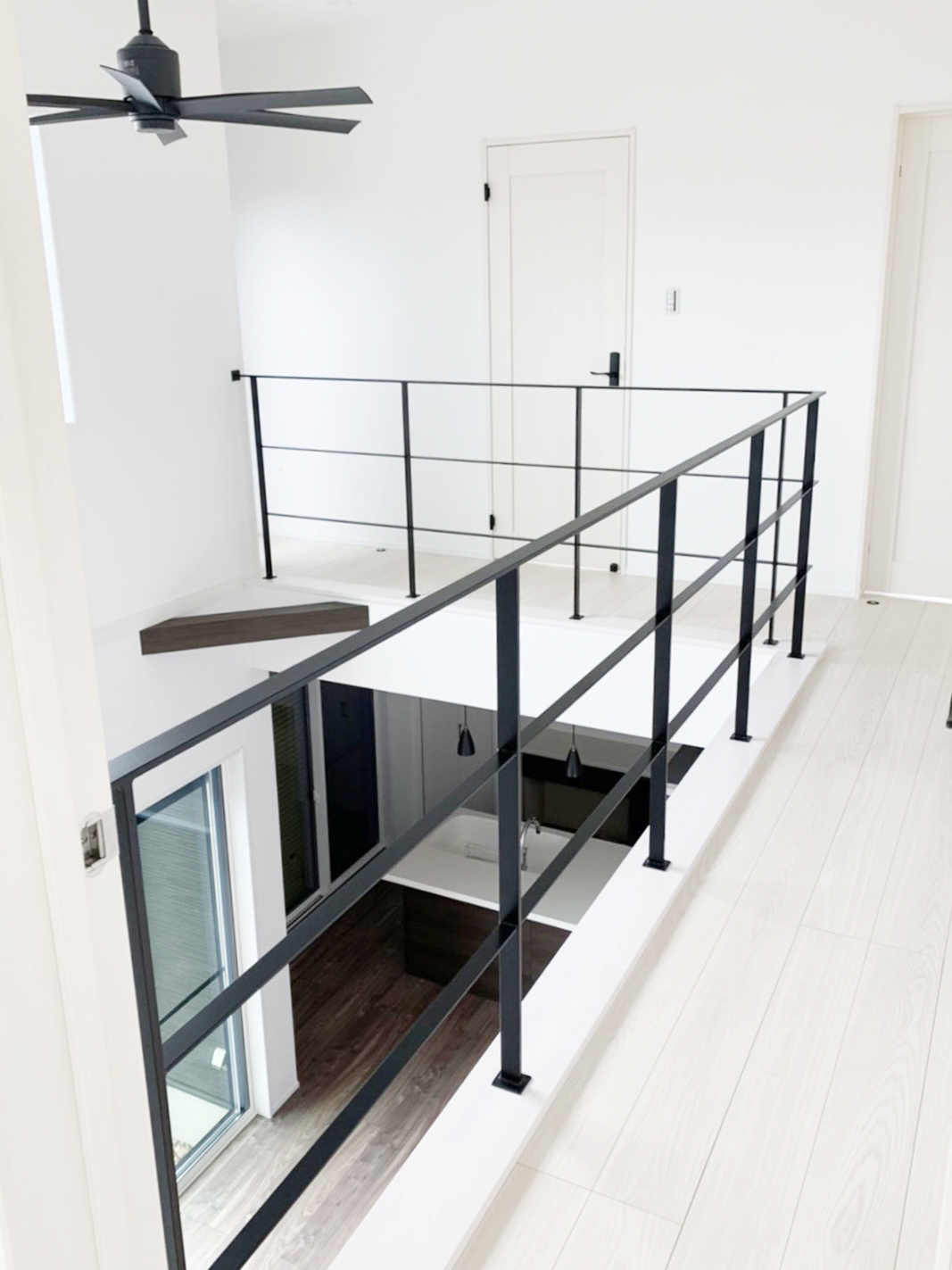 【三重】大きなL型吹き抜けと階段をつなぐアイアン手すりの取付け