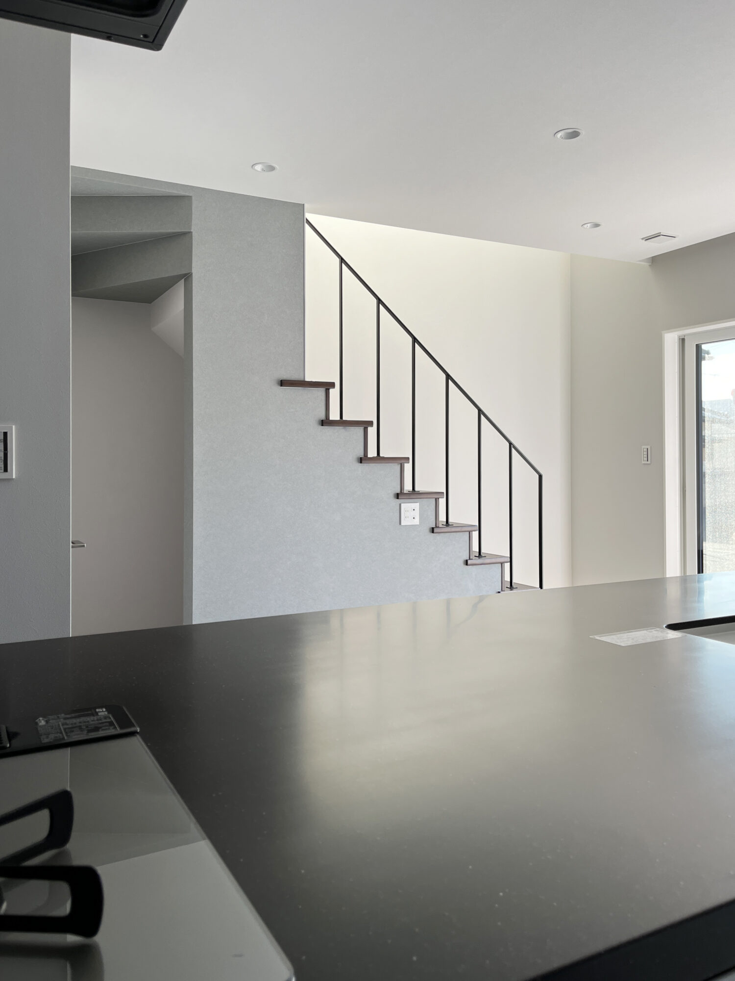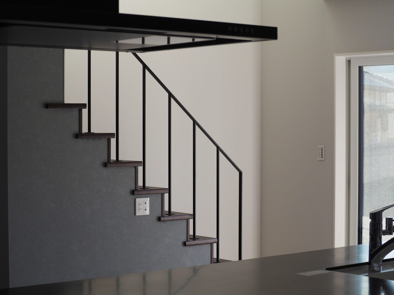 キッチンからも良く映えるアイアン手すり