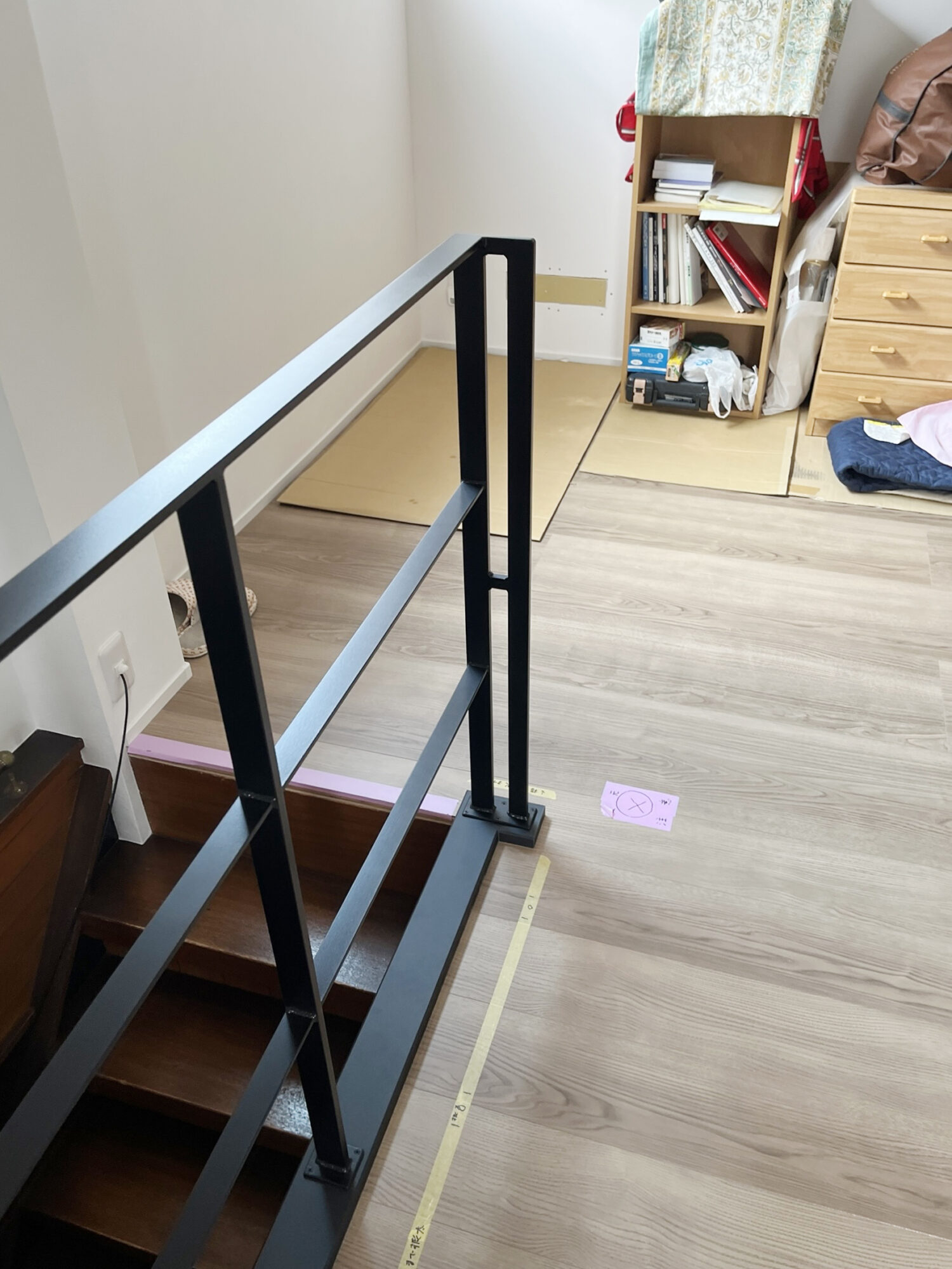 まず初めにお電話頂いた内容が、「アイアン手すりを取り付けようと考えていたところに木製の手すりが取り付けられていて。。」とご連絡頂いたんです!お客様はこの部分をスッキリカッコいいアイアンにしたかったようで、リフォームされている業者さんではアイアン手すり業者が見つけられず、木製手すりを取り付けようとしたそうなんです。という訳で、お客様ご自身で探されご連絡頂いたたのだということでした。