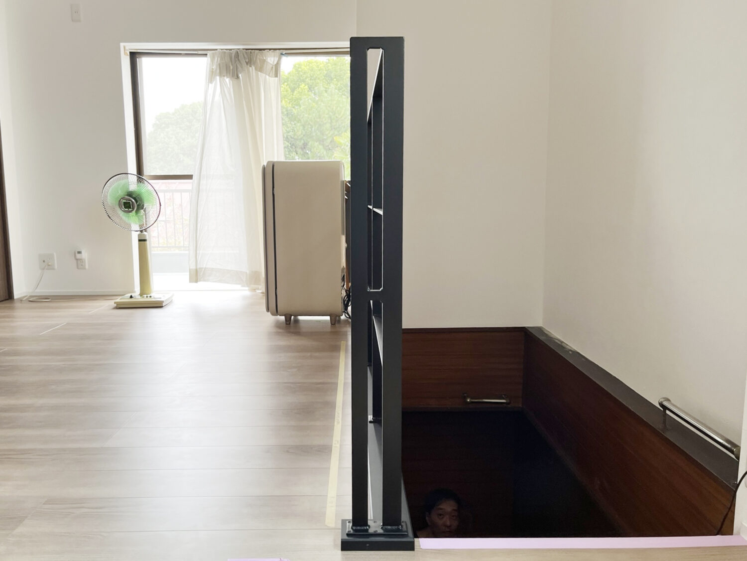 また今回はお客様が採寸を担当!足元の笠木にピッタリ合うように、今までの経験を踏まえ少しクリアランスを考えて制作し、きっちりと真ん中に持ってくることが来ました。